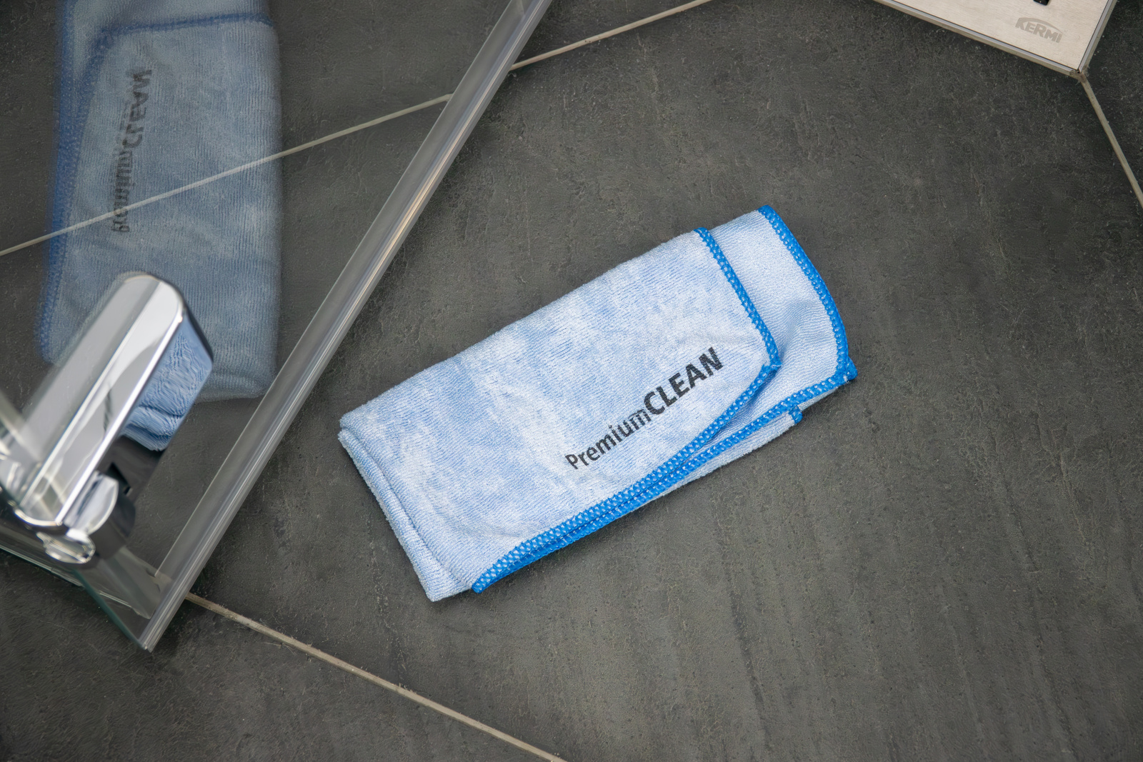 douchescherm, pluisvrij en zonder watervlekken achter te